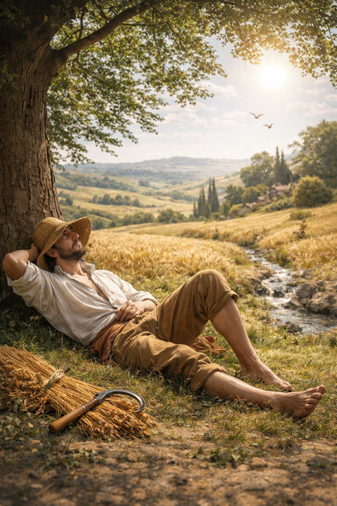 | Bel conforto al mietitore, quando il sol più ferve e bolle, sotto un faggio, appiè di un colle riposarsi e respirar! Del meriggio il vivo ardore Tempran l’ombre e il rio corrente; ma d’amor la vampa ardente ombra o rio non può temprar. Fortunato il mietitore che da lui si può guardar! |